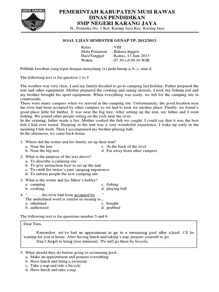 Soal bahasa inggris kelas 8 kurikulum 2013 soal bahasa inggris kelas 8 kurikulum 2013 contoh soal essay bahasa inggris kelas 8 semester 1 | kumpulan …
